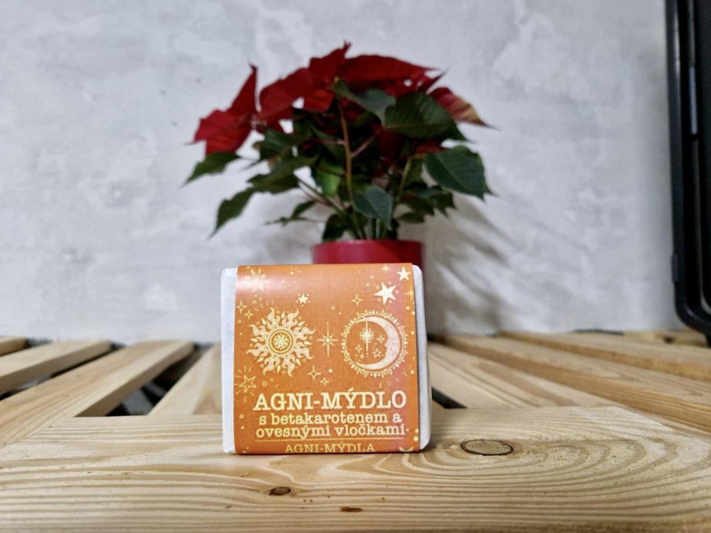 Agni mýdlo s betakarotenem a ovesnými vločkami nejen vyživuje pokožku, ale také podporuje vyrovnání energie oranžové čakry, která je spojena s kreativitou, emocemi a vnitřní rovnováhou.